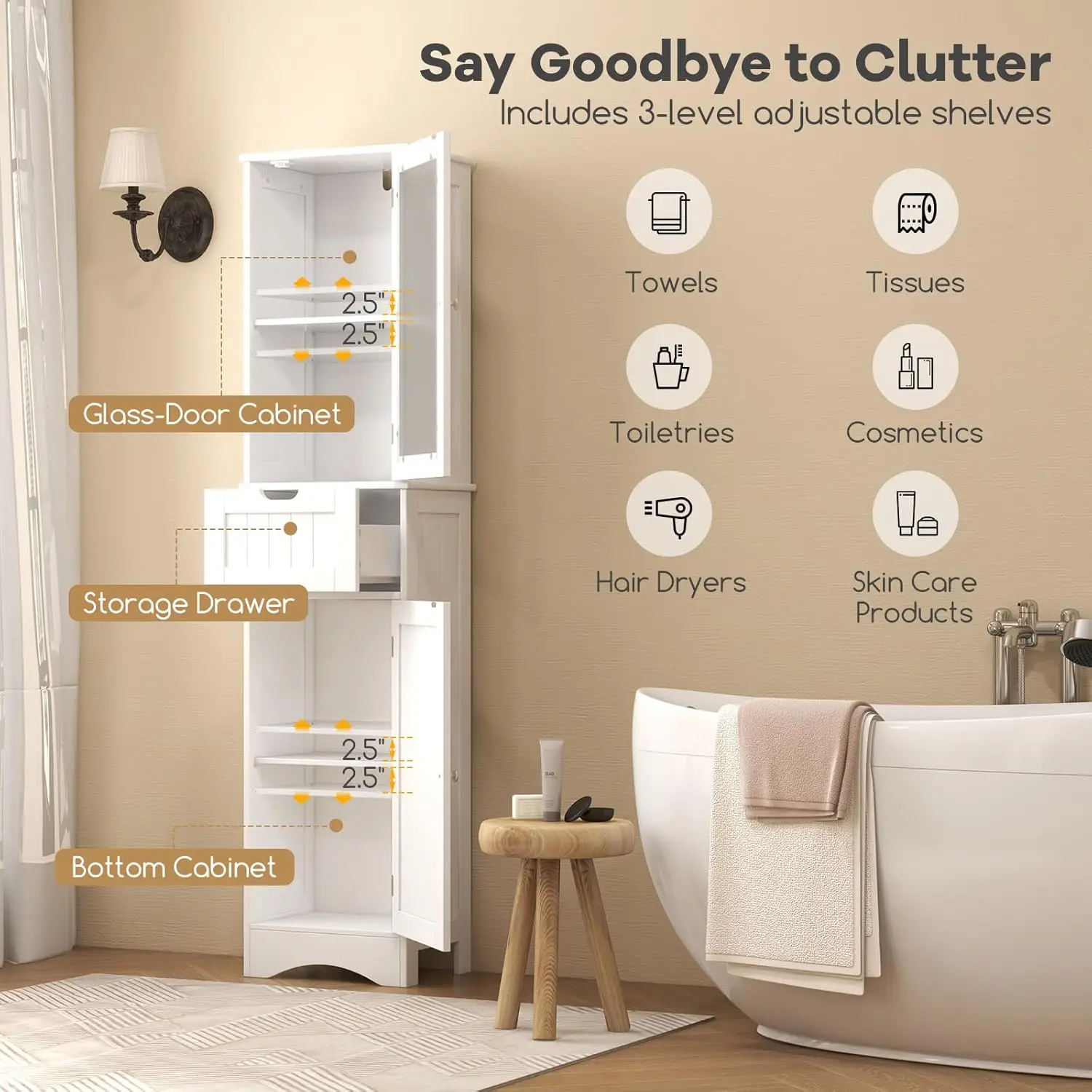 This 67-inch slim tower cabinet offers efficient vertical storage with a space-saving design. Featuring two doors and a drawer, it provides both concealed and accessible storage options. The adjustable shelves allow flexible organization for items of various sizes. Its narrow profile makes it perfect for tight spaces in bathrooms or other rooms. The freestanding structure ensures stability and easy placement. Designed to keep essentials neatly arranged while reducing clutter. Its modern style complements contemporary and minimalist interiors effortlessly. Crafted for durability, it ensures long-lasting performance and reliability. The combination of storage compartments enhances both convenience and functionality. This cabinet is a practical and stylish solution that elevates organization and home decor.
