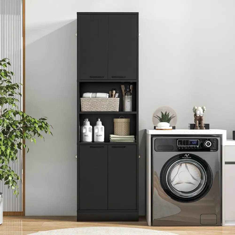 This 75-inch tall bathroom cabinet offers spacious storage with a clean and functional design. Featuring four doors and two open shelves, it provides versatile organization for various essentials. The combination of concealed and open storage keeps your space both tidy and accessible. Its freestanding structure allows flexible placement in bathrooms or other rooms. Built with anti-toppling devices, it ensures added safety and stability. Perfect for organizing toiletries, towels, and household items with ease. The tall design maximizes vertical space without overwhelming the room. Its modern look complements contemporary interiors effortlessly. Crafted for durability, it ensures long-lasting performance and reliability. This cabinet is a practical and stylish solution that enhances storage and organization in your home.