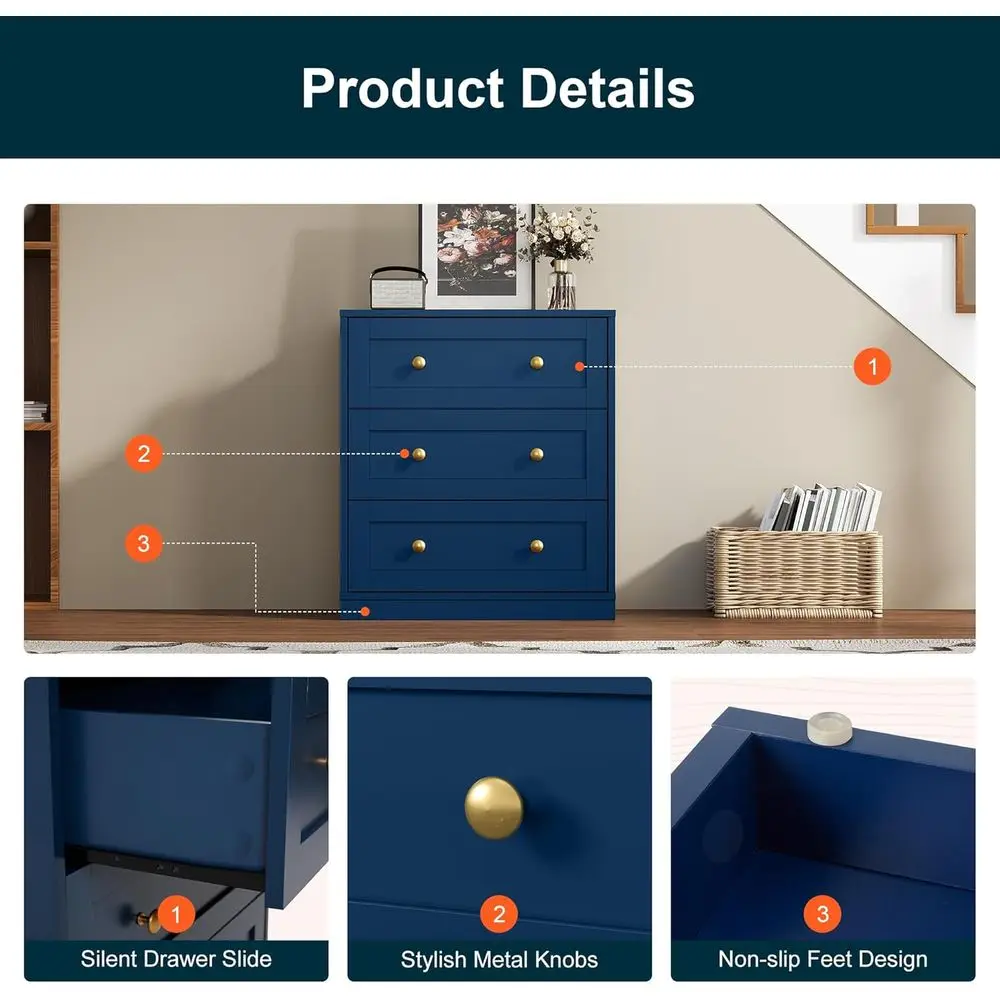 This large blue wooden nightstand brings bold color and timeless charm to your home. Designed with classic round knobs, it adds subtle traditional character. Its spacious structure provides practical storage for everyday essentials. Perfect for bedrooms, it functions beautifully as a bedside table. In living rooms, it serves as a stylish end table with storage. Ideal for hallways and closets, it keeps items neatly organized. The rich blue finish creates a striking yet versatile accent. Crafted from durable wood, it ensures long-lasting stability and performance. The clean lines blend effortlessly with both modern and classic interiors. This accent chest is a functional and decorative piece that enhances organization and adds personality to any space.