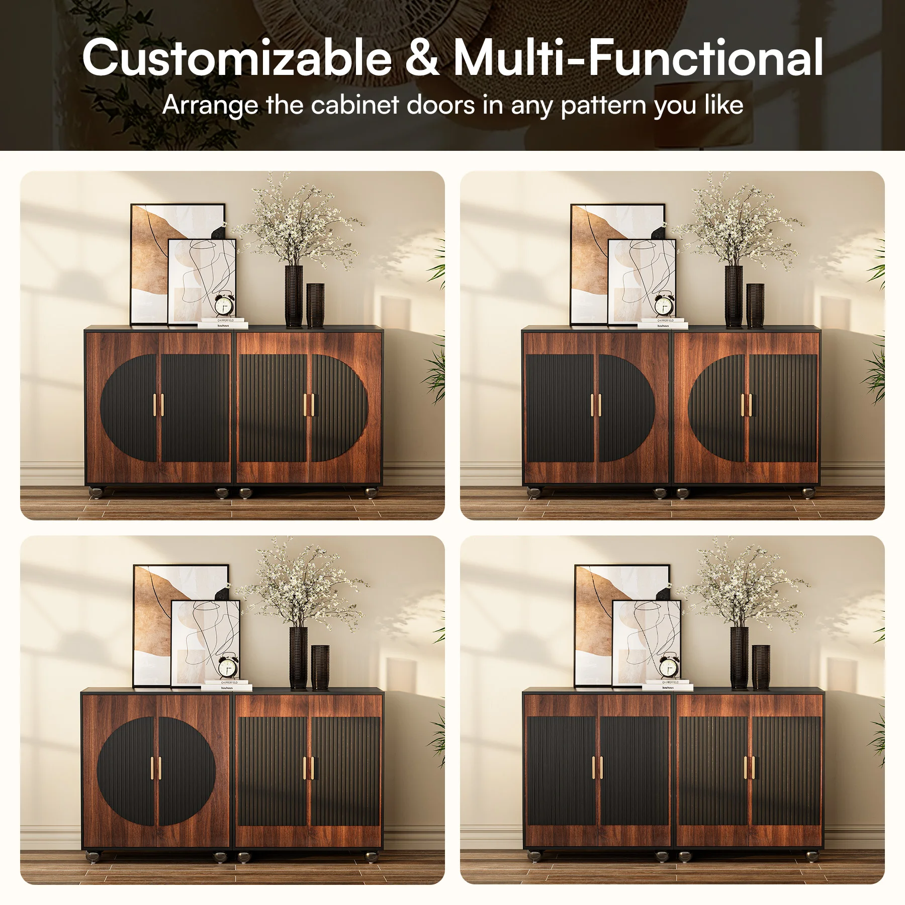 This fluted mid-century sideboard blends timeless design with practical storage. The textured fluted detailing adds depth and visual interest to any room. Designed with a modular structure, it offers flexibility for various layouts and spaces. Its compact size makes it ideal for small living rooms or kitchens. The clean lines reflect classic mid-century modern style. Spacious interior compartments provide convenient storage for dinnerware, linens, or everyday essentials. The smooth top surface works beautifully as a display area for decor or serving pieces. Crafted to balance style and function, it enhances organization without sacrificing elegance. Its versatile design complements both contemporary and vintage-inspired interiors. This buffet cabinet is a refined storage solution that elevates your home with character and charm.