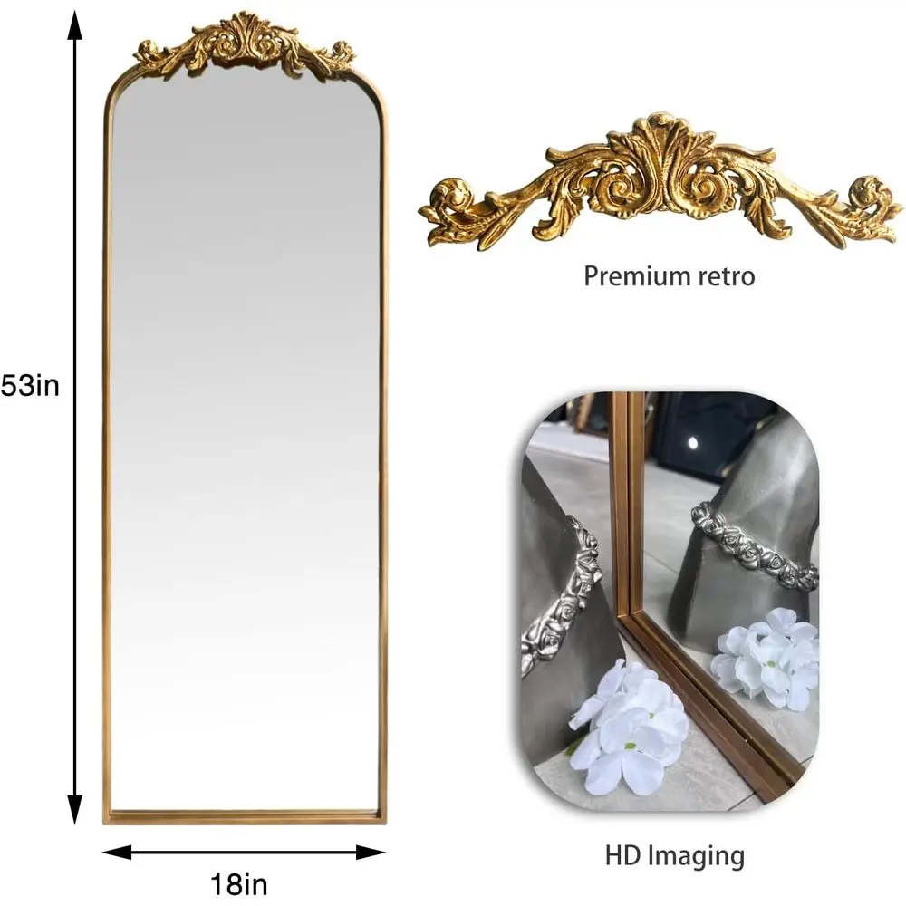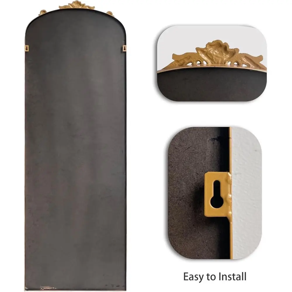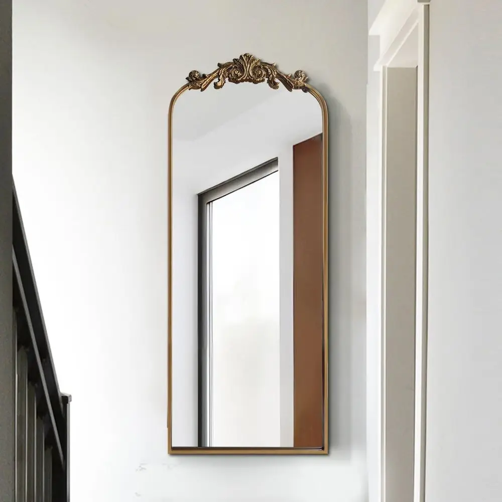 This large gold antique arched mirror brings timeless elegance and ornate craftsmanship to your home. Designed with intricate detailing, it creates a striking vintage focal point. The tall arched shape adds graceful architectural appeal. Its gold finish enhances warmth and classic sophistication. Perfect for entryways, it creates a welcoming and refined first impression. In hallways and living rooms, it brightens spaces while elevating decor. The full-length design provides practical functionality for dressing and styling. Crafted for durability, it ensures long-lasting beauty and stability. Its vintage aesthetic complements traditional and eclectic interiors effortlessly. This mirror is a statement piece that transforms your space with elegance and classic charm.