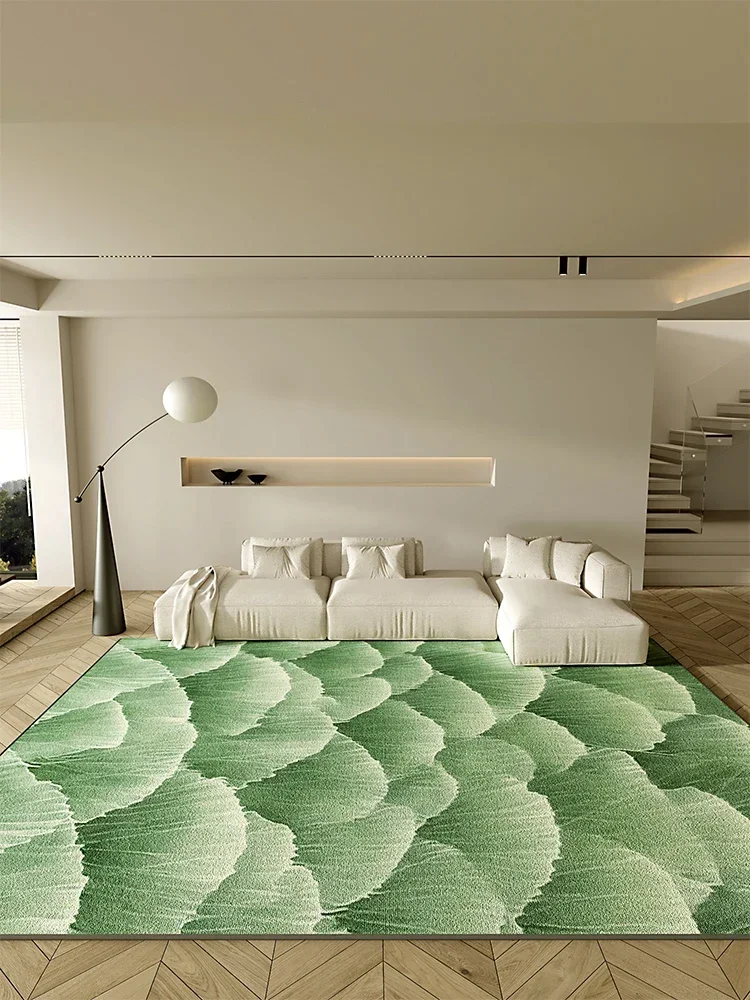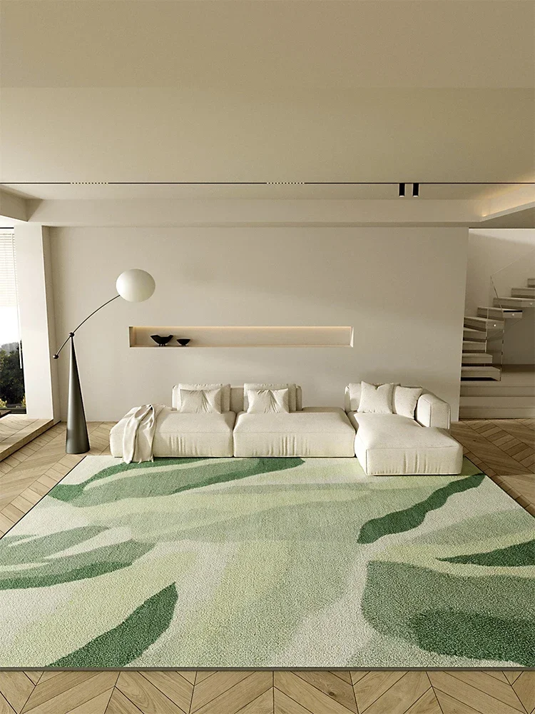 This green leaf gradient rug brings nature-inspired design and soft comfort to your home. Featuring an abstract leaf pattern with a gentle gradient, it adds depth and visual interest. The soothing green tones create a fresh and calming atmosphere. Its large size makes it ideal for living rooms and bedrooms. The soft surface provides a comfortable feel underfoot for everyday use. Perfect for relaxing spaces, it enhances both comfort and style. The modern design complements contemporary and nature-inspired interiors effortlessly. Crafted for durability, it withstands daily wear while maintaining its appearance. The gradient effect adds a unique artistic touch to your decor. This rug is a stylish and functional addition that elevates comfort and modern home design.