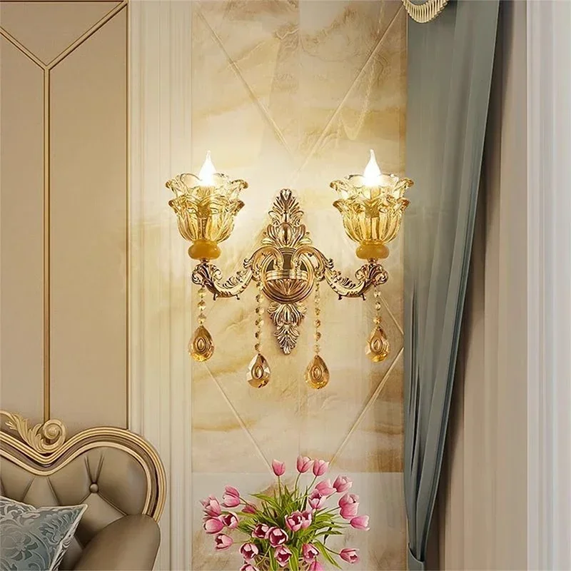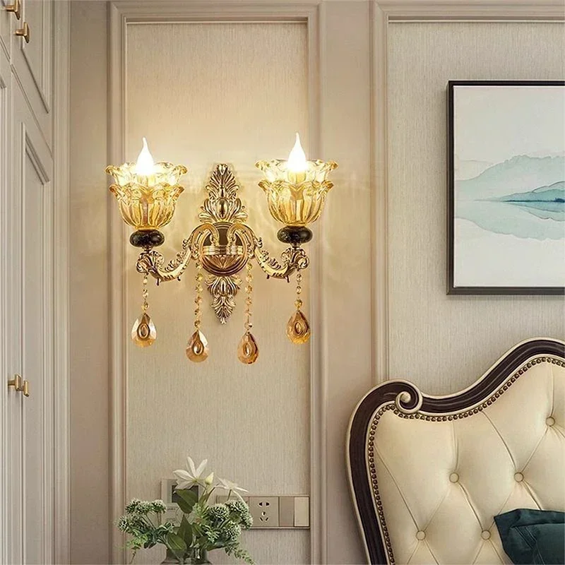 This luxury crystal wall lamp brings European-inspired elegance and radiant lighting to your home. Designed with sparkling crystal elements, it reflects light beautifully for a refined glow. The sophisticated silhouette enhances both classic and modern interiors. Perfect for living rooms, it creates a warm and inviting atmosphere. In bedrooms, it serves as a stylish and functional bedside light. Ideal for corridors, it adds subtle illumination while elevating decor. The wall-mounted design keeps spaces clean and uncluttered. Its luxurious finish introduces timeless charm and sophistication. Crafted for durability, it ensures long-lasting performance and beauty. This wall lamp is a statement lighting piece that enhances ambiance and elevates your interior design.