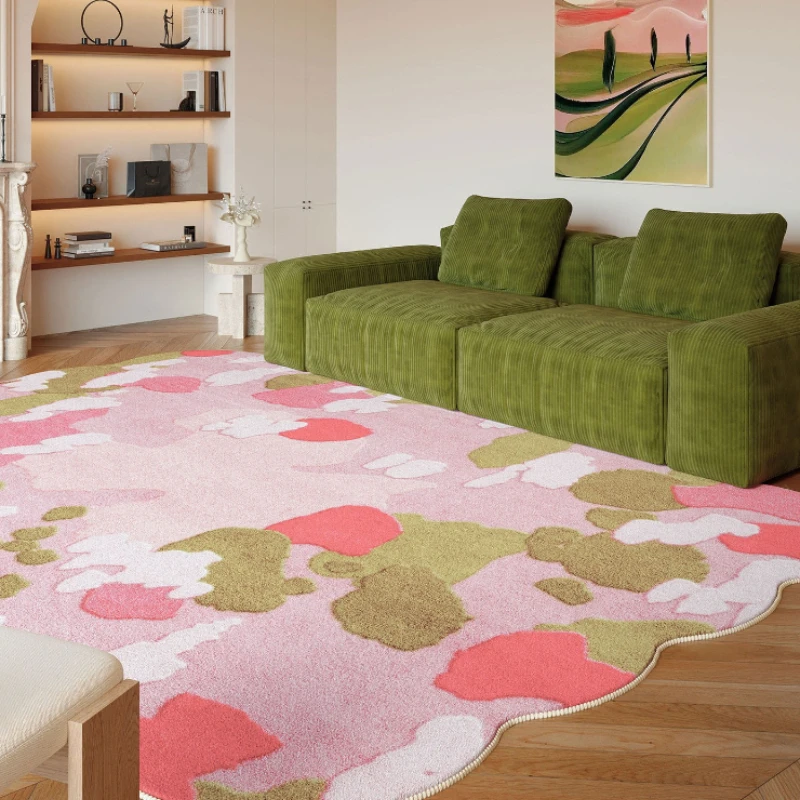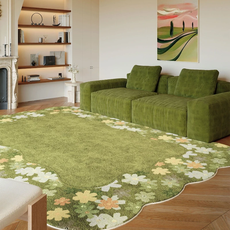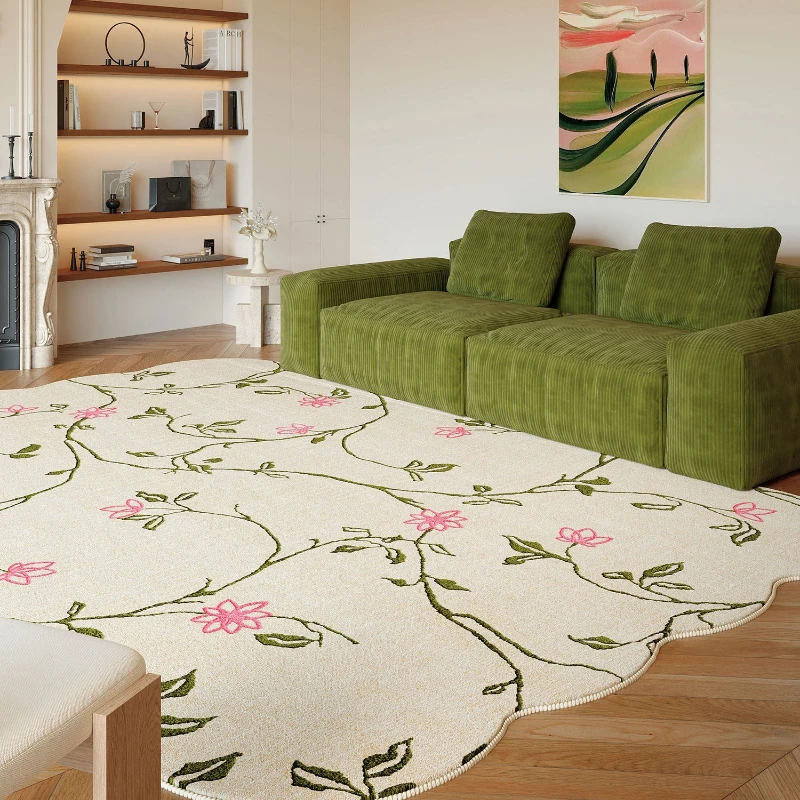 This pastoral floral plush rug brings soft elegance and nature-inspired charm to your home. Designed with delicate floral patterns, it adds warmth and artistic detail. The irregular shape creates a unique and eye-catching layout. Its thick, fluffy texture provides a cozy and luxurious feel underfoot. Perfect for living rooms, it enhances both comfort and decorative appeal. In bedrooms, it creates a calm and inviting atmosphere. The pastoral design introduces a gentle and relaxing aesthetic. Crafted for durability, it maintains its plush softness while withstanding daily use. Its distinctive look complements both modern and romantic interiors. This rug is a stylish and functional piece that elevates comfort and home decor.
