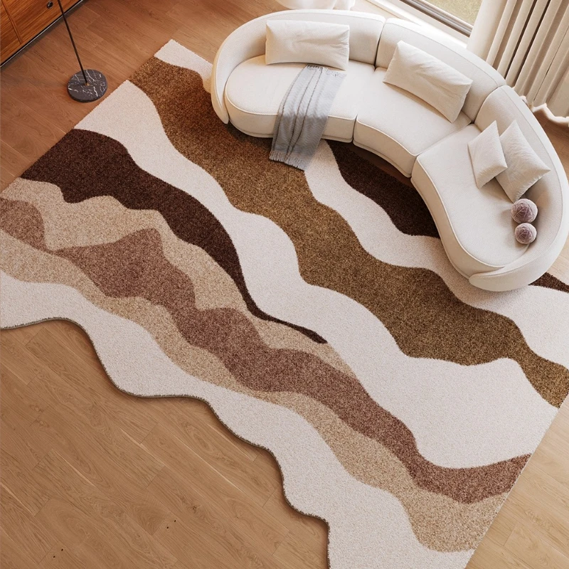 This sea wave plush rug brings fluid design and soft comfort to your home. Inspired by ocean waves, its irregular shape adds movement and artistic appeal. The thick, fluffy texture provides a cozy and luxurious feel underfoot. Perfect for living rooms, it creates a relaxed and inviting atmosphere. In bedrooms, it enhances comfort with a soft and stylish surface. The French-inspired design adds subtle elegance and charm. Its modern aesthetic complements contemporary interiors effortlessly. Crafted for durability, it maintains softness while withstanding everyday use. The unique wave form creates a striking decorative focal point. This rug is a stylish and functional piece that elevates both comfort and modern home decor.